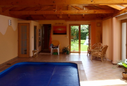 Bazén s celoročním využitím u rodinného domu. S rodinným domem je spojen podzemní chodbou. |