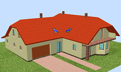 Novostavba RD se zděnou konstrukcí. Částečně podsklepený dům s členitým půdorysem |